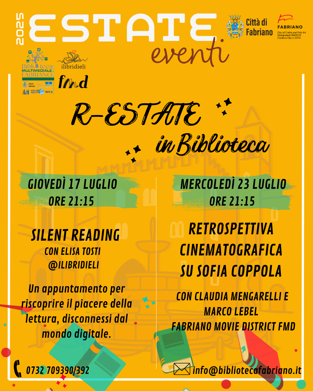 Alla Biblioteca Multimediale Fabriano "R. Sassi" tanti appuntamenti per passare insieme un luglio tra libri, cinema e teatro.
