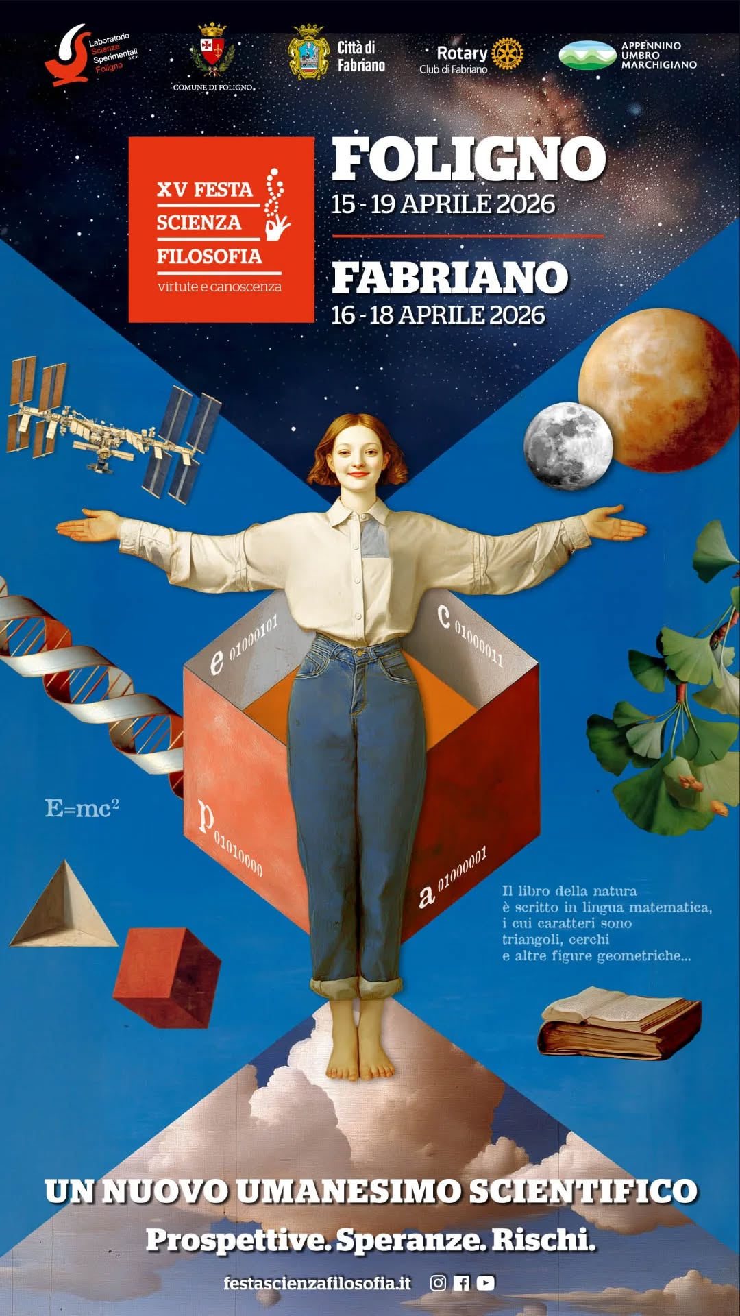 La XV edizione della Festa di Scienza e di Filosofia – Virtute e Canoscenza si terrà dal 15 al 19 aprile 2026 a Foligno e dal 16 al 18 aprile 2026 a Fabriano. Il tema principale è "Un Nuovo Umanesimo Scientifico. Prospettive. Speranze. Rischi", che esplora l'integrazione tra tecnologia e valori umani.