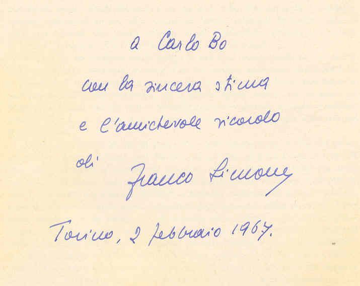 1 v. Con dedica dell'autore a Carlo Bo.