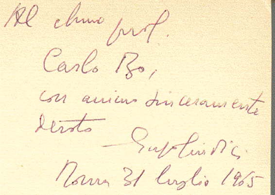 v. 1 Con dedica dell'autore a Carlo Bo