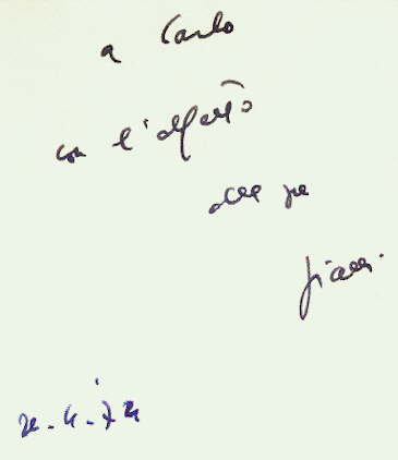 Con dedica dell'autore: "A Carlo Bo con l'affetto ... Gianni - 21.04.'74".