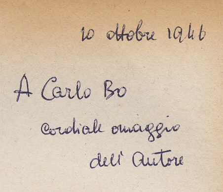 1 v. Con dedica dell'autore a Carlo Bo